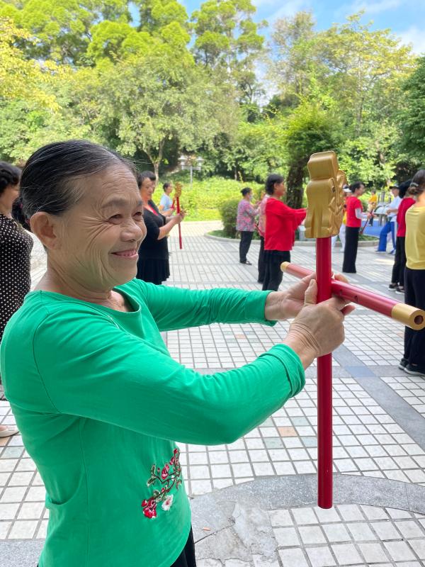 讀特客戶端·深圳新聞網(wǎng)2021年11月26日訊(記者 陳彬)這一兩個月來,每天早上,有一群精氣神十足的阿姨們,手持一種舞蹈道具,在南頭古城臨中山公園的地方,非常有意思地跳著一種舞蹈,成為了南頭古城的一道風(fēng)景。在她們舞蹈時,時不時會有路人走近好奇地問:阿姨,你們這是在跳一種韓國舞蹈、還是日本舞蹈?她們會指著旁邊的KT板展架說:好好看看那上頭,學(xué)習(xí)學(xué)習(xí)我們中國文化。