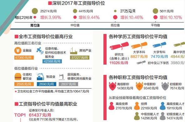 深圳今年工資指導價位平均5611元/月