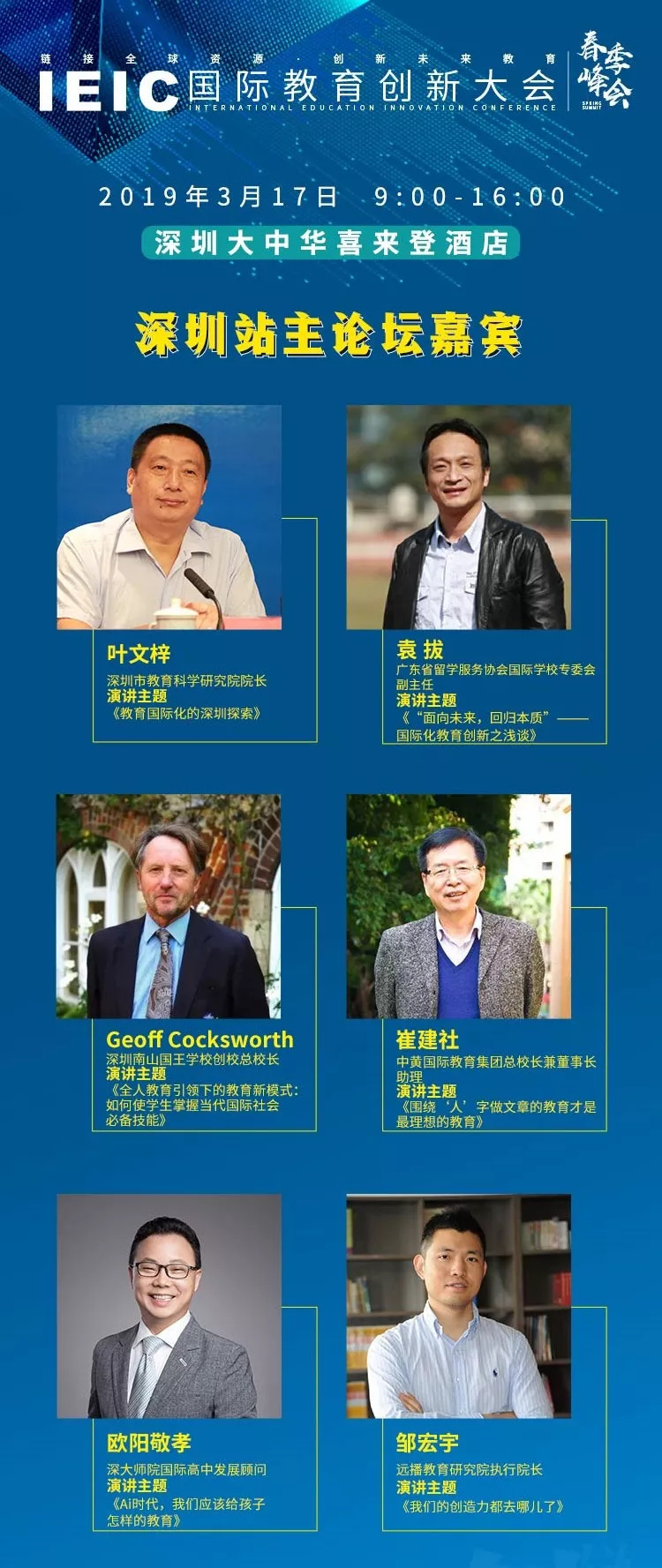 3月17日,由遠播國際教育主辦的2019年“IEIC國際教育創(chuàng)新大會春季峰會·深圳站”將在大中華喜來登酒店舉行。