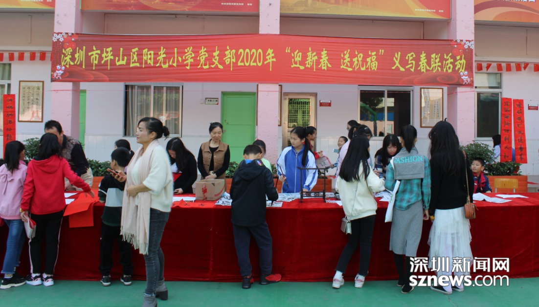 近日,深圳市坪山區(qū)陽(yáng)光小學(xué)開(kāi)展“迎新春 送祝福”義寫春聯(lián)活動(dòng),老師們現(xiàn)場(chǎng)揮毫?xí)鴮懸桓备痹⒁庑麓鹤85拇郝?lián),為社區(qū)居民、家長(zhǎng)奉上美好祝愿。