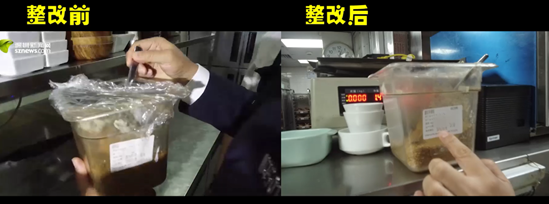 4月19日記者回訪發(fā)現(xiàn)該餐廳負(fù)責(zé)人整改態(tài)度積極,針對檢查中指出的問題進(jìn)行了逐項整改,包括:后廚外專門騰出一個空間擺放食材及工具,不再占用廚房區(qū)域;生熟食已做到分開放置;倉庫擺放整齊有序;消毒柜溫度已可以達(dá)到90度以上;新設(shè)置一個粗加工區(qū)與烹調(diào)區(qū)隔離開;被查封的涼菜間重新進(jìn)行了問題排查與改善。經(jīng)過轄區(qū)食藥監(jiān)管部門的復(fù)評后目前該餐廳的餐飲量化等級已恢復(fù)至B級。該餐廳負(fù)責(zé)人也向記者表示,“星期三查餐廳”不僅是檢查,還給予他們對后廚管理的手把手的指導(dǎo),提升很大,后續(xù)將繼續(xù)加強(qiáng)后廚管理,給消費者一個安全健康的就餐環(huán)境保障。