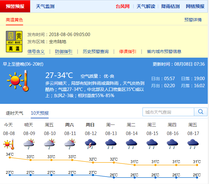 市氣象局發(fā)布未來10天天氣預(yù)報(bào)(數(shù)據(jù)更新于8月8日07時(shí)36分)