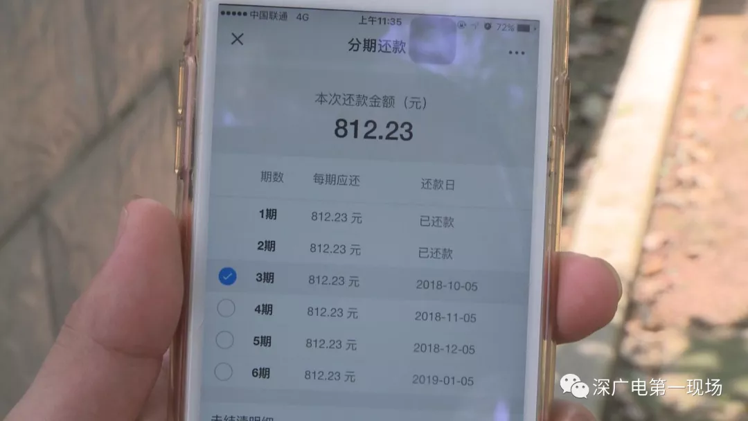 而這一切都要從一次借貸說起。由于需要資金周轉(zhuǎn),今年7月5號,盧先生通過朋友介紹,在微信上找到一家名為“手機(jī)貸”的借貸平臺,當(dāng)時(shí)借了4400元,分6期還款,每期應(yīng)還812元,每個月5號還款。