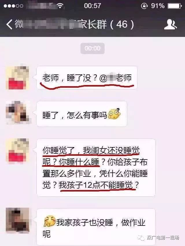 微信的內(nèi)容是這樣的,家長問:"老師,睡了嗎?"老師看了之后回了句"睡了,怎么有事嗎?"沒想到家長的回答是"你睡覺了,我閨女還沒睡覺呢?你睡什么睡?你給孩子布置那么多作業(yè),憑什么你能睡覺?我孩子12點(diǎn)不能睡覺?"