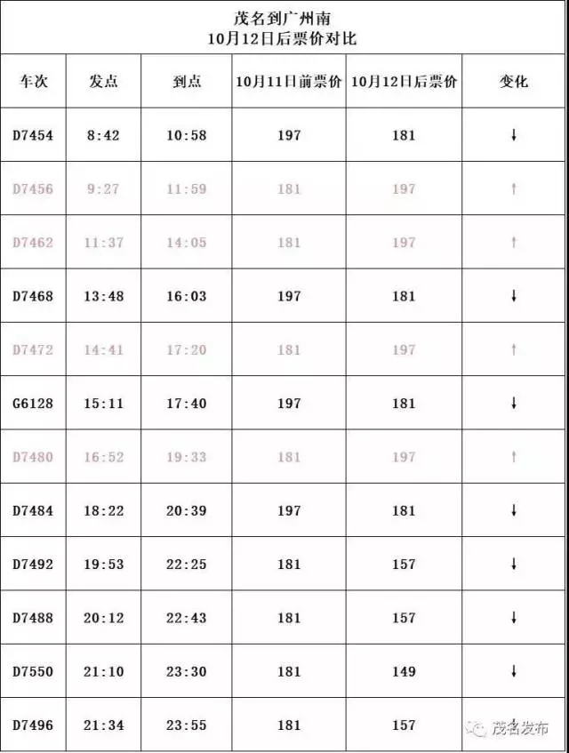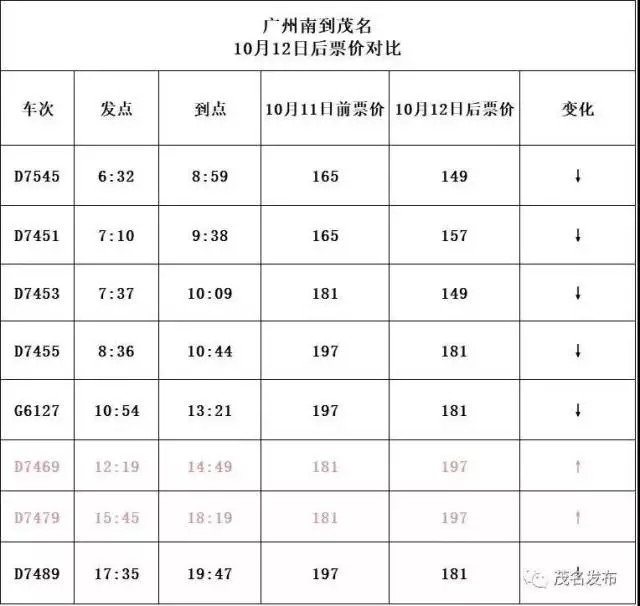 D7451次(7點(diǎn)10分班次)由原來(lái)的206元調(diào)整為196元;