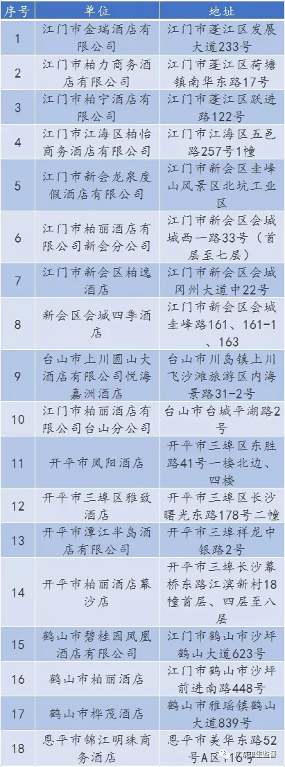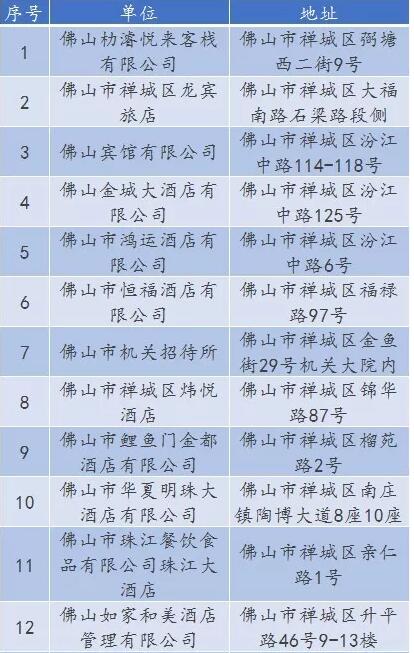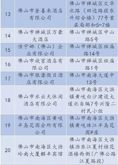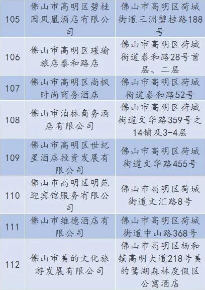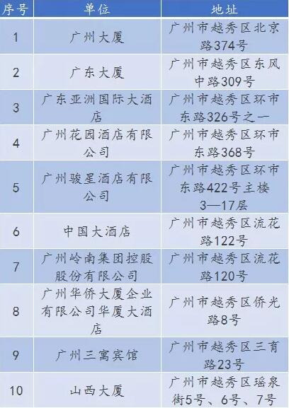 廣東省A級(jí)住宿單位名單