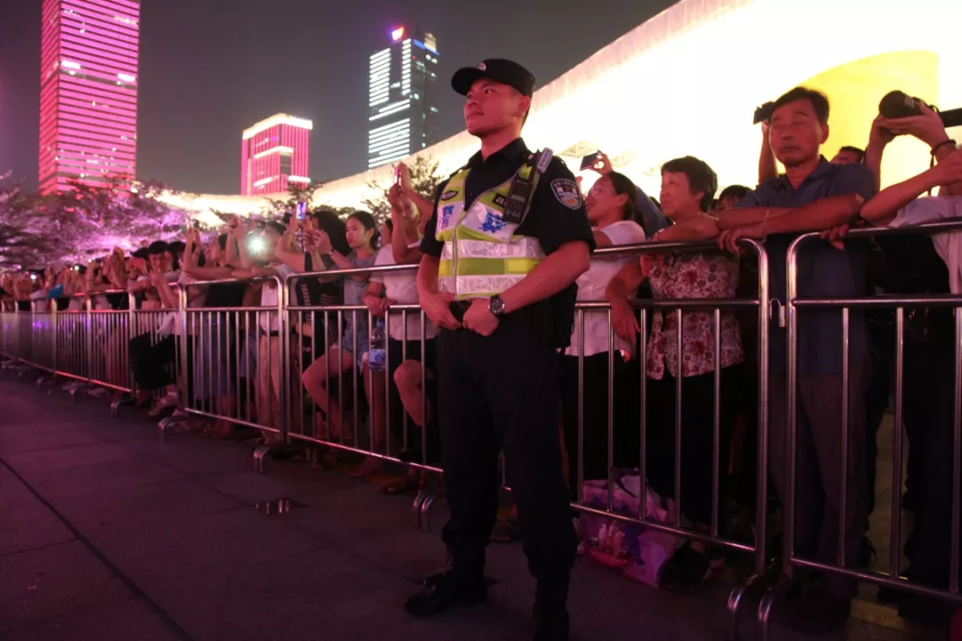 “燈光秀”活動正式表演首日,現(xiàn)場觀演人數(shù)約54300人,福田公安分局出動1000名警力在現(xiàn)場及周邊維持秩序,確?;顒禹樞蚺e行。