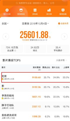 截止10月5日凌晨,《無雙》累計(jì)票房4.25億