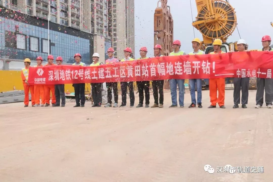 伴隨著旋挖鉆機(jī)的轟鳴聲,黃田站樁板墻首根灌注樁成功開鉆,打響了深圳地鐵12號(hào)線土建五工區(qū)工程主體結(jié)構(gòu)施工大戰(zhàn)的第一槍,標(biāo)志著該工程完成前期工程,正式拉開了主體工程建設(shè)的帷幕。