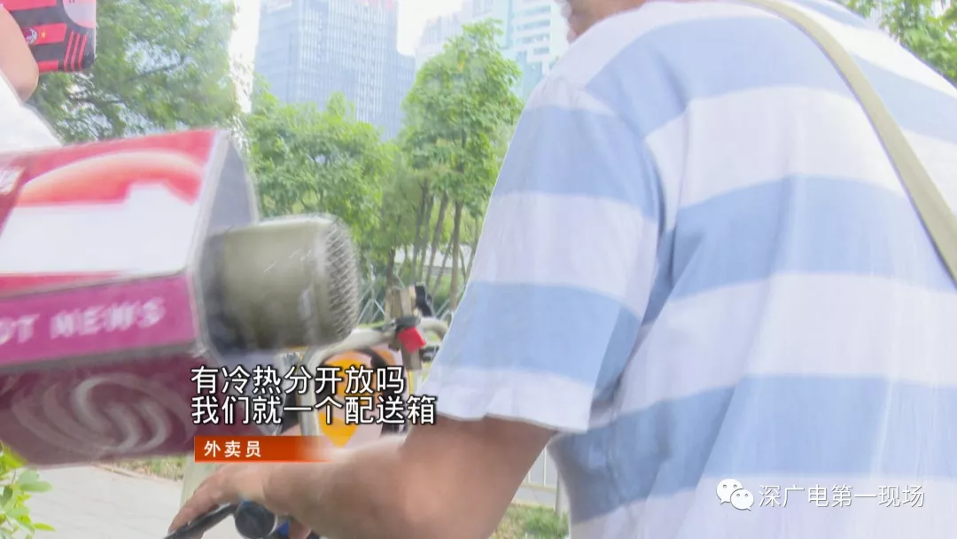 隨后送來(lái)的三份外賣里,冷飲和飯菜同樣是混合放在一個(gè)外賣箱中一起送過(guò)來(lái)。大部分外賣員反映,外賣箱沒(méi)有明確區(qū)分冷藏和熱藏區(qū)成了最大問(wèn)題,對(duì)于商家統(tǒng)一打包的冷飲和熱飯菜,他們大多也都不會(huì)主動(dòng)去分開運(yùn)送。