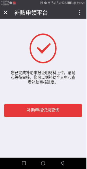 第五步:完成補(bǔ)助預(yù)登記后,點(diǎn)擊【補(bǔ)助申報(bào)記錄查詢(xún)】即可查詢(xún)個(gè)人補(bǔ)助申請(qǐng)進(jìn)度了。