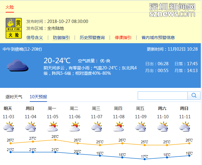 市氣象局發(fā)布未來十天天氣預(yù)報(bào)(數(shù)據(jù)更新于11月02日10時(shí)28分)