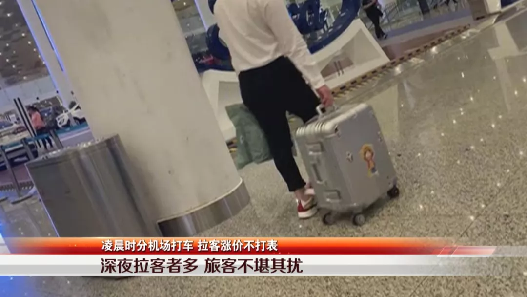 針對(duì)黃先生反映的情況,記者在晚上11點(diǎn)鐘來(lái)到機(jī)場(chǎng)實(shí)地調(diào)查。在機(jī)場(chǎng)到達(dá)大廳的出入口,記者看到兩名男子站在出口位置,詢問(wèn)出來(lái)的旅客,是否需要打車(chē),一看到附近有機(jī)場(chǎng)安保人員出現(xiàn),兩名男子便立刻轉(zhuǎn)身離開(kāi)。
