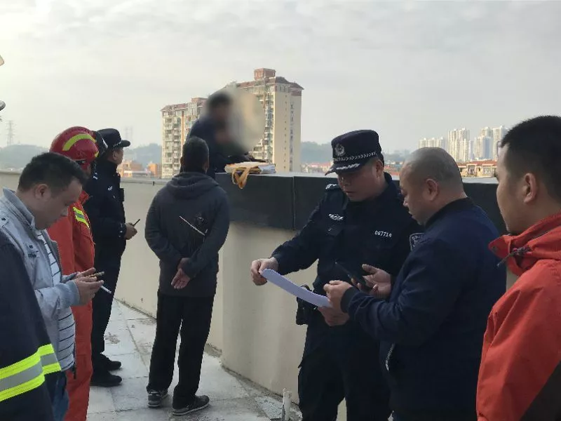隨后,公安、消防等多部門很快趕到現(xiàn)場(chǎng)。大家兵分幾路,一路是消防救援人員,立即在一樓鋪設(shè)了救援氣墊,另一路是民警,對(duì)男子進(jìn)行現(xiàn)場(chǎng)勸說(shuō)。