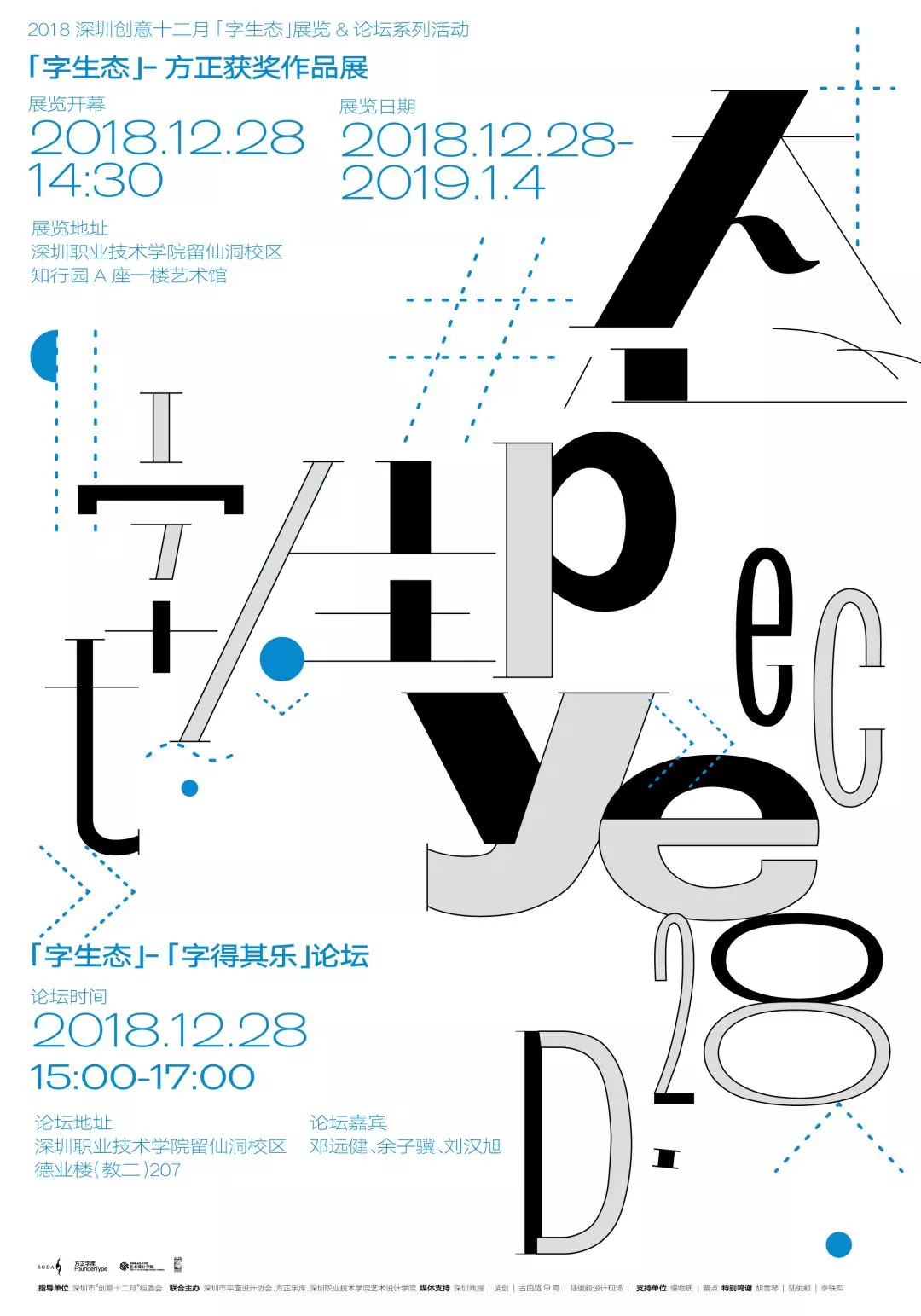 深圳新聞網(wǎng)2019年1月2日訊 2018年12月28日,“字生態(tài)-文字設(shè)計系列活動”開幕式在深圳職業(yè)技術(shù)學(xué)院留仙洞校區(qū)舉行。作為本屆創(chuàng)意十二月的重要內(nèi)容之一,本次活動由深圳市平面設(shè)計協(xié)會、方正字庫與深圳職業(yè)技術(shù)學(xué)院藝術(shù)設(shè)計學(xué)院共同舉辦,旨在新的語境和文字生態(tài)下,回顧當(dāng)代中國漢字設(shè)計成果、展示傳統(tǒng)漢字美學(xué)再造路徑、探討文字設(shè)計的多維呈現(xiàn)與全新價值輸出可能。