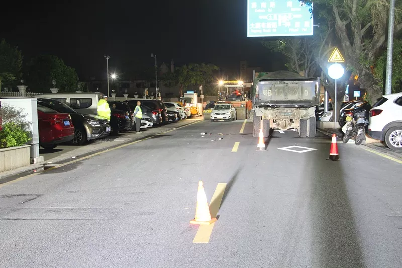 2018年11月27日凌晨2時(shí)21分許,龍某駕駛無號牌二輪電動車沿大鵬新區(qū)大鵬街道建設(shè)路由北往南方向行駛至華興新村路段時(shí),車頭徑直撞上了停放在道路旁的粵B號牌輕型自卸貨車車尾,頓時(shí)龍某連車帶人摔倒在地。