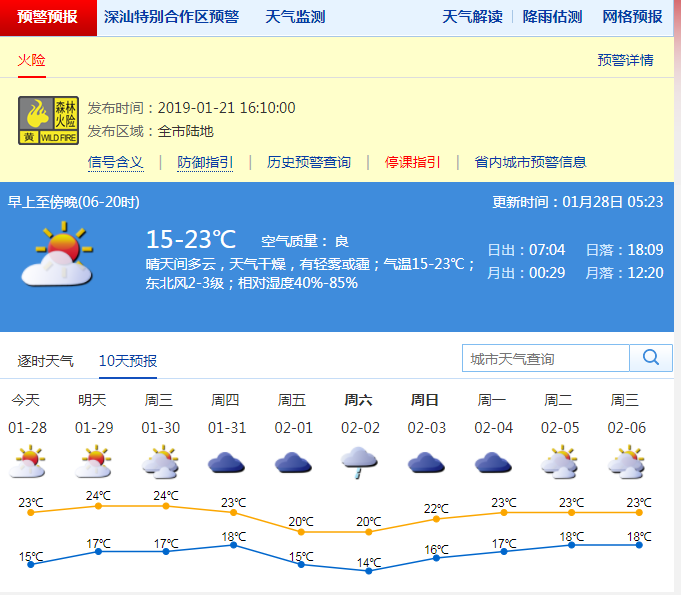氣象專家表示,未來三天深圳晴朗干燥,是春節(jié)前大掃除和洗曬的好時(shí)機(jī)。最近空氣持續(xù)干燥,森林火險(xiǎn)黃色預(yù)警生效中,市民需注意用火安全,外出游玩不帶火種上山;寒冷天氣需嚴(yán)防一氧化碳中毒,浴室應(yīng)注意通風(fēng)良好,注意燃?xì)鉄崴魇褂冒踩?,?yán)禁使用直排式和煙道式熱水器。