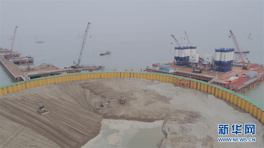 這是深中通道伶仃洋大橋東錨碇施工現場(3月13日無人機拍攝)。
