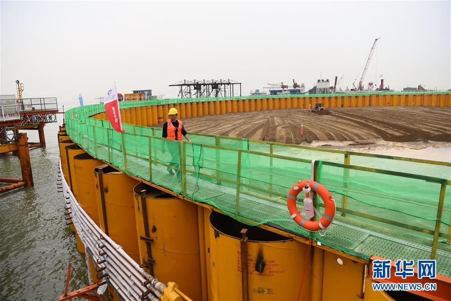 這是深中通道伶仃洋大橋東錨碇施工現場(3月13日攝)。新華社記者鄧華攝