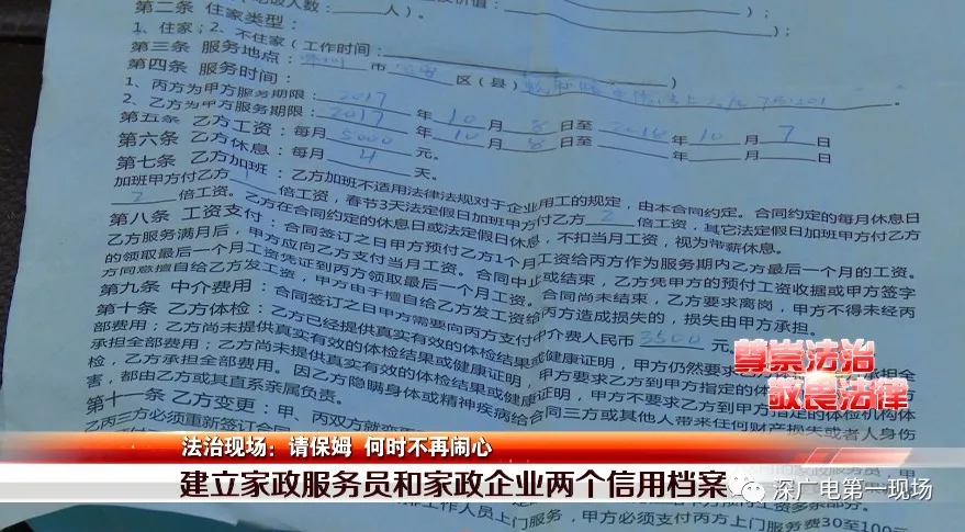 趙坤:合同明明白白,責(zé)任清清楚楚,有糾紛按照合同約定走。但話又說回來,請(qǐng)保姆是為了讓自己省心省事,誰也不想出了事,鬧到最后對(duì)著合同約定一條條論責(zé)任。如果市民請(qǐng)保姆,能方便清楚的知道我要請(qǐng)的保姆是否有犯罪記錄?是否有病史?家政公司信譽(yù)怎么樣?是否被投訴過?那才是真省心,對(duì)此國家相關(guān)部門也出手了。