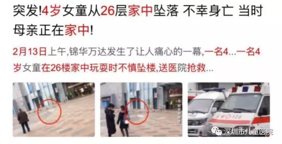 2月13日,四川成都,一名4歲女孩在26樓的家中玩耍時不慎墜樓,送醫(yī)搶救無效死亡。據(jù)了解,看護孩子的母親當時正在上廁所,臥室窗戶沒有安裝防護欄,孩子玩耍時不慎掉下樓層。