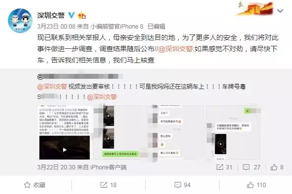 為了確保車內(nèi)乘客安全,深圳交警與舉報(bào)人進(jìn)行聯(lián)系,與此同時(shí)迅速掌握車輛及駕駛?cè)诵畔ⅲ?/span>對(duì)車輛駕駛情況展開(kāi)調(diào)查持續(xù)關(guān)注車輛動(dòng)態(tài)。