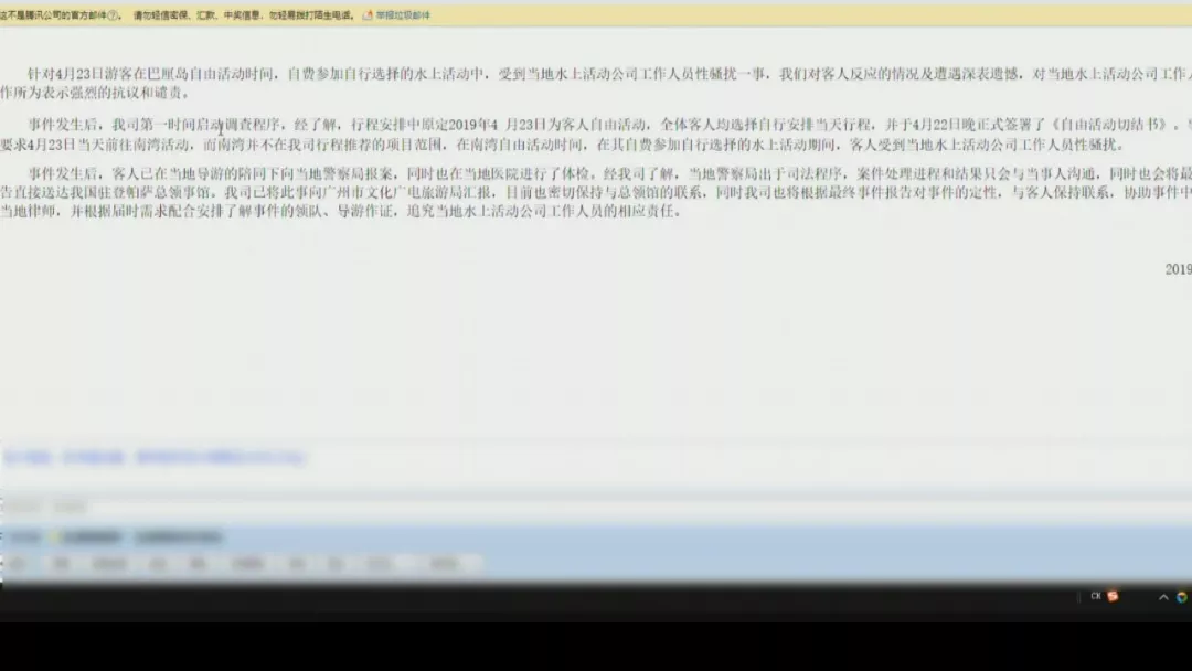 印尼方在26號召開了新聞發(fā)布會,確認了楊先生的女兒被侵犯的事實。據了解,嫌疑人今年29歲,是爪哇島人,目前在等待下一步的審判結果。隨后記者聯系到了南湖國旅的工作人員,對方表示不方便接受采訪,隨后發(fā)來了一個回應郵件。