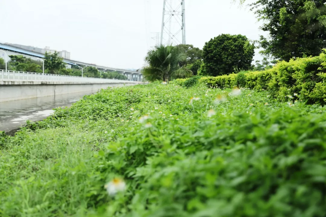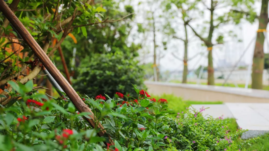兩岸樹木蔥蘢、繁花似錦
