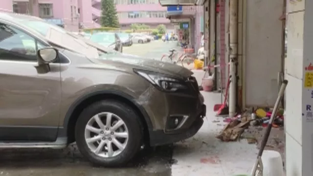 今天早上10點(diǎn)03分,深圳寶安區(qū)西鄉(xiāng)街道福中福社區(qū)內(nèi)的停車場,一輛別克SUV突然失控撞向街邊一家賣女性服裝的店鋪。