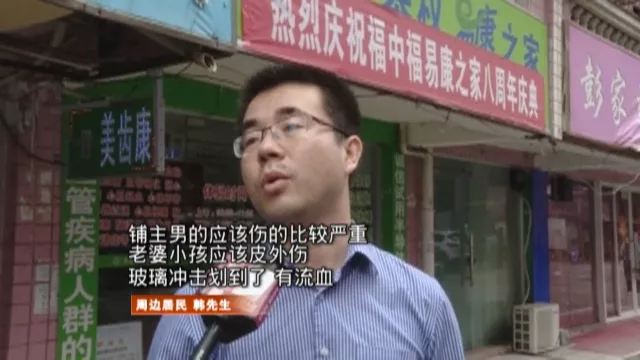 據(jù)目擊者稱,當(dāng)時店鋪內(nèi)有老板一家三口,以及一名女顧客,四人均有不同程度受傷。周邊居民馬上報警,并呼叫了救護(hù)車。