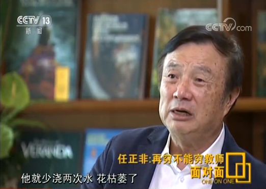 任正非:一樣,我們可以講,在日本一個小學(xué)教師,娶一個電影明星做太太,但以前是有名字的,現(xiàn)在我不講這個名字了,很正常,覺得很榮耀,不覺得不榮耀。當(dāng)然我們國家七十年來有巨大進(jìn)步,這三十年也有巨大改善,對吧,教師的生活也有大的進(jìn)步,但是我們要看到他們是我們祖國的未來,他們是國家未來。他們擔(dān)負(fù)著花朵,給花朵澆水的人。我們都不給花朵澆水的人一種事業(yè)心一種使命感的話,他就少澆兩次水,花枯萎了,我們不就是一個喬布斯少掉了嗎?