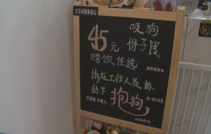 雖然不是周末,還是有顧客在里面消費,記者看到,收費欄寫著45元吸狗份子錢,贈送飲品。