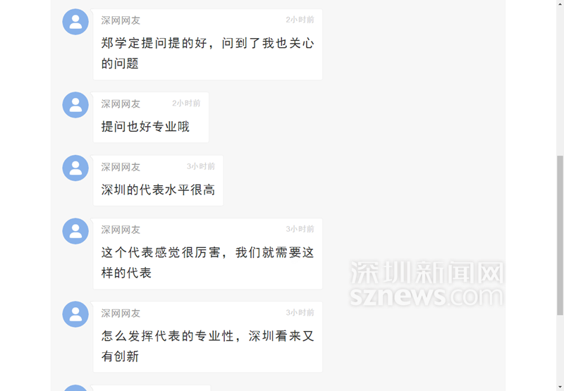大講堂期間,網(wǎng)友涌入直播頁面以留言的方式對(duì)深圳市人大代表大講堂貼近民生的選題表示肯定,不少人大贊深圳市人大代表臥虎藏龍,不光主講嘉賓朱聞博有能力,提問的四個(gè)代表(李繼朝、鄭學(xué)定、肖幼美、黃翔)也非常有水平,問到了點(diǎn)子上,“希望代表和專家碰撞出火花,讓深圳的明天更美好”。