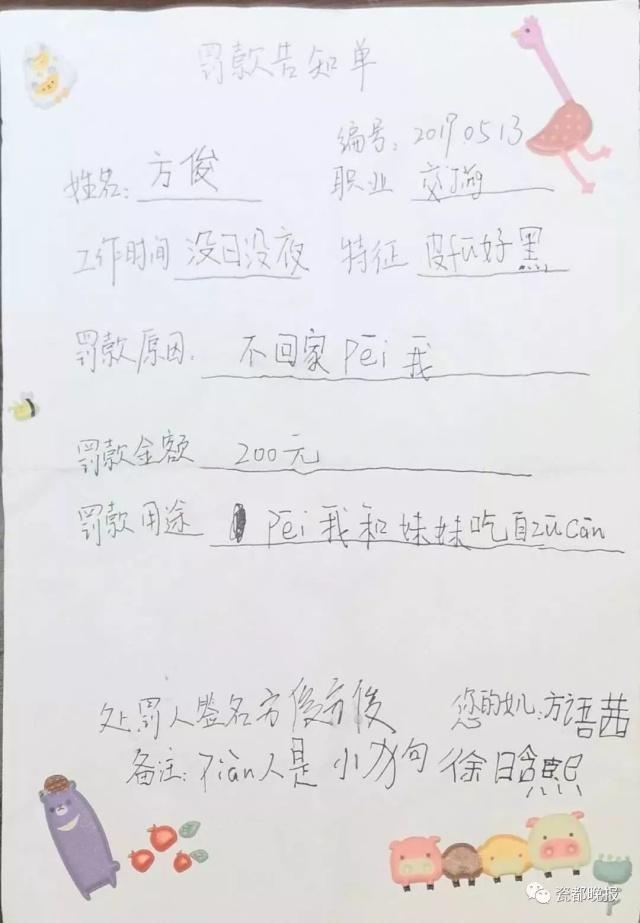 便制作了一張“愛的罰單”,