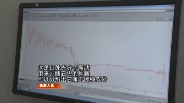 在記者說明來意后,工作人員接過單先生的石頭進(jìn)入實(shí)驗(yàn)室,首先用小電筒和寶石顯微鏡,進(jìn)行外觀檢測(cè)。然后將石頭放到這臺(tái),叫“傅里葉變換紅外光譜”的儀器,檢測(cè)它的分子結(jié)構(gòu)。