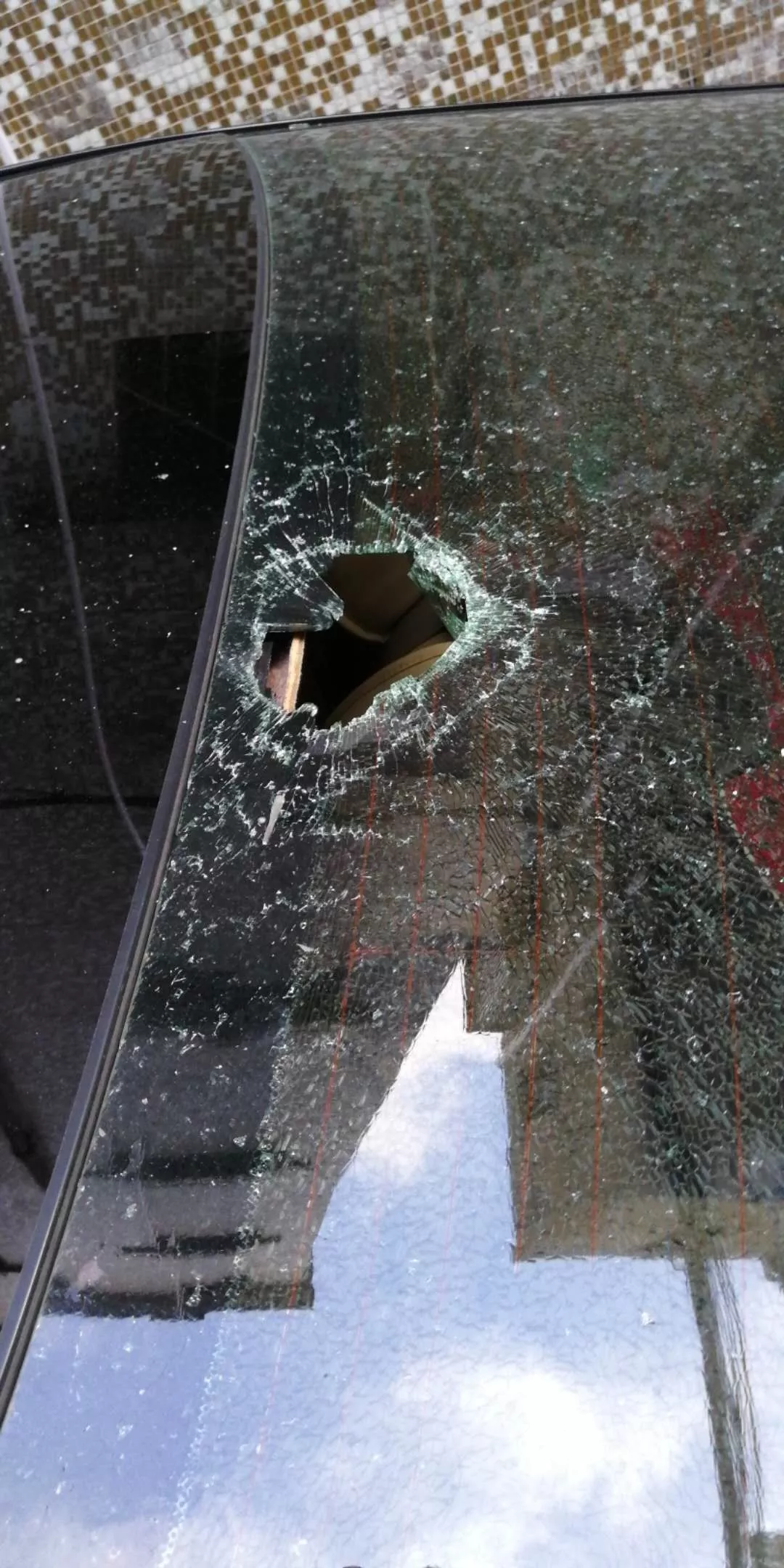 ▲車(chē)玻璃被砸了一個(gè)大洞