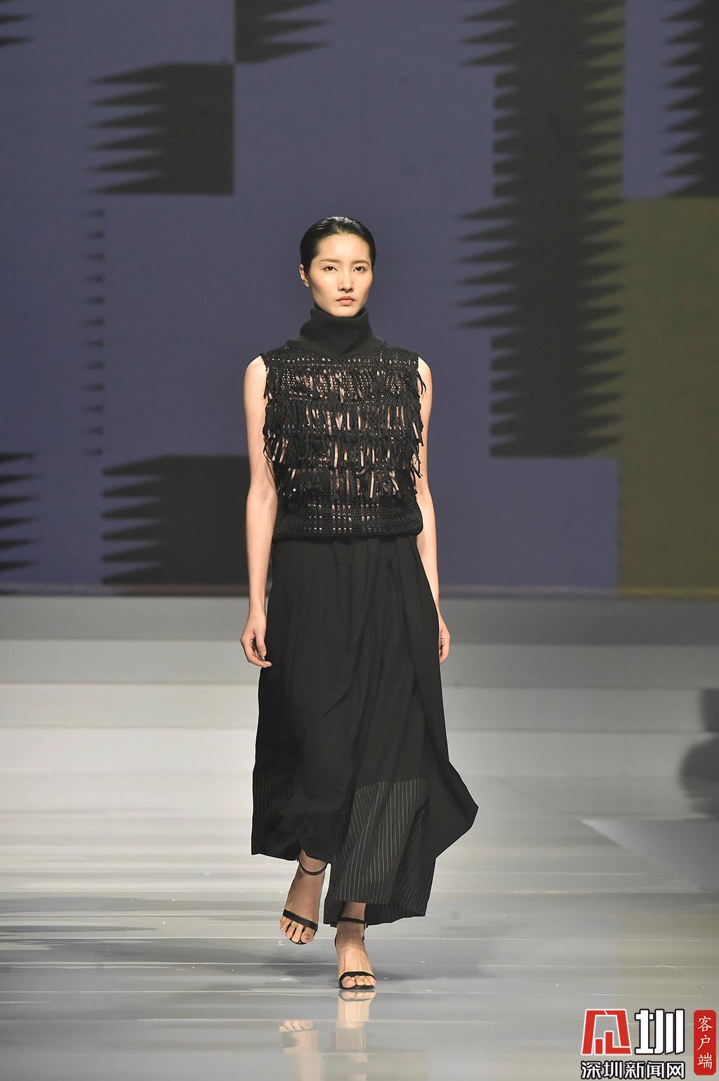 時裝優(yōu)秀學(xué)生組展示環(huán)節(jié),設(shè)計(jì)師肖榕作品,其作品以純黑色系為主