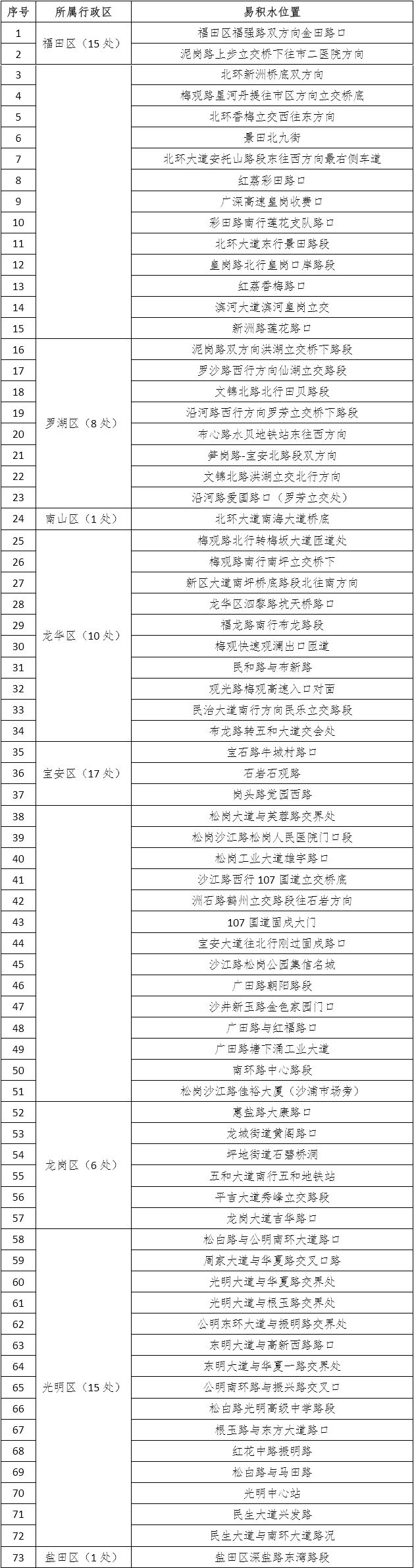 2019年我市已經(jīng)歷多輪暴雨天氣,根據(jù)氣象局、三防辦等權(quán)威部門發(fā)布的積水路段信息,總結(jié)出全市范圍暴雨天氣易積水路段如下。