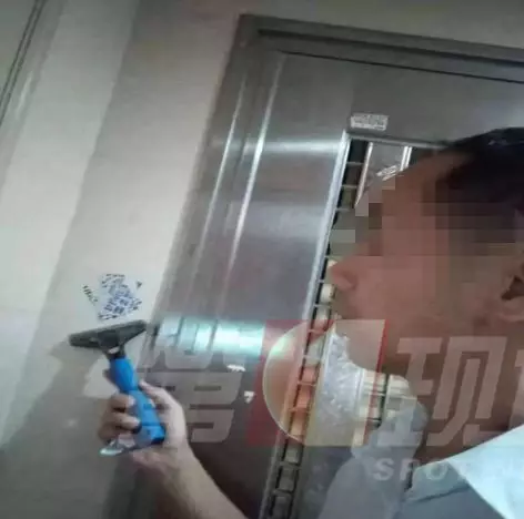 ▲小區(qū)物管人員上門清理“牛皮癬”