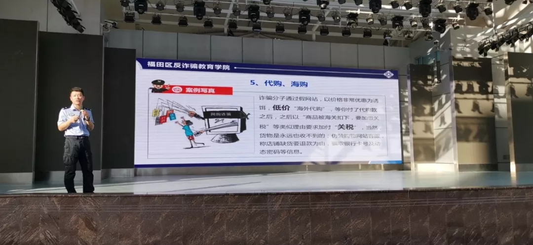 活動當天,福田區(qū)反詐騙教育學院第33場公開課于香蜜湖派出所轄區(qū)東海繽紛天地英皇電影院舉行,東海小區(qū)物業(yè)管理人員及東海繽紛城工作人員參加活動。