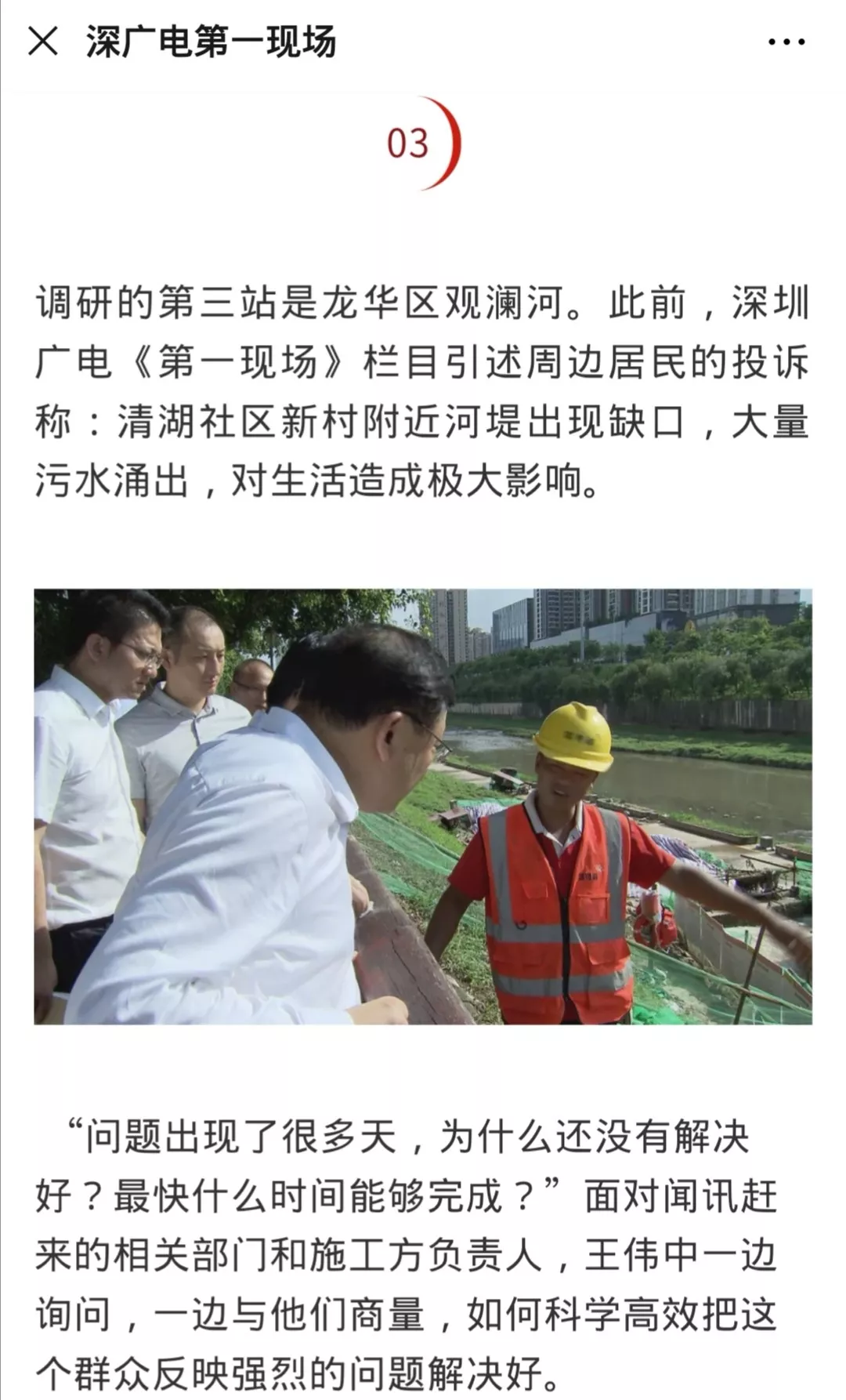 龍華區(qū)水務(wù)局工作人員排查原因后表示之所以這個(gè)地方會涌出污水,和記者之前去采訪的觀瀾河梅龍大道旁的污水干管塌陷有關(guān),而這一塌陷位置也是本月初省委副書記、市委書記王偉中暗訪調(diào)研的其中一站↓↓