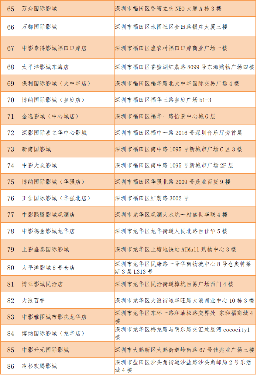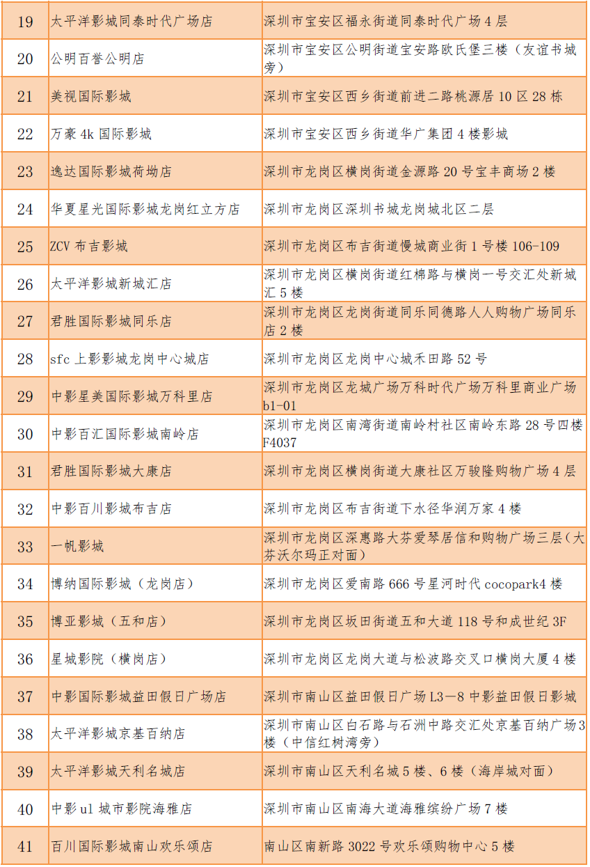 加入《電影票退改簽標(biāo)準(zhǔn)》的影院名單