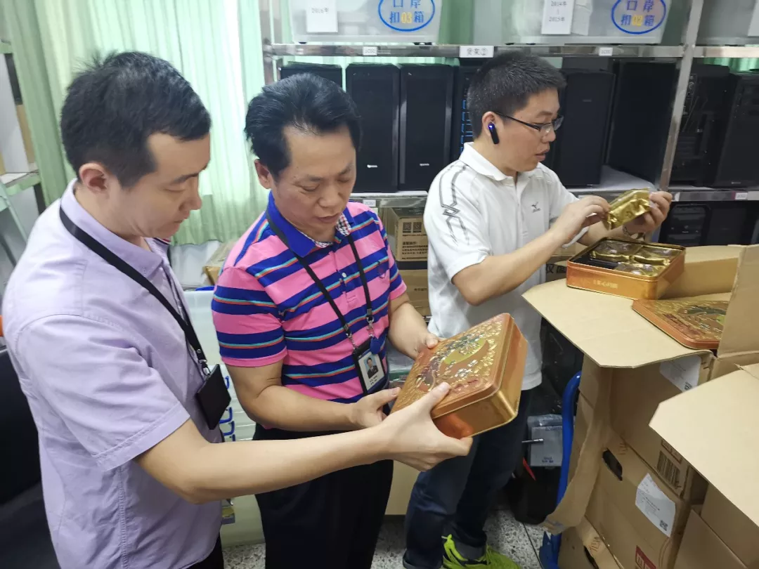 2019年9月3日,深圳市市場(chǎng)監(jiān)管局羅湖監(jiān)管局聯(lián)合公安機(jī)關(guān)連夜查處一跨區(qū)域售賣假冒月餅案,查扣涉嫌假冒品牌月餅近千盒,公安機(jī)關(guān)帶走一名嫌疑人調(diào)查,成功打響中秋節(jié)前“月餅保衛(wèi)戰(zhàn)”。