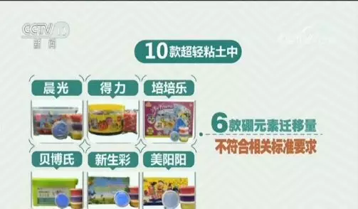其中,10款超輕黏土中有6款硼元素遷移量被檢出不符合相關(guān)標(biāo)準(zhǔn)要求;這六款樣品分別是:標(biāo)稱晨光、得力、培培樂、貝博氏、新生彩和美陽陽牌超輕黏土。