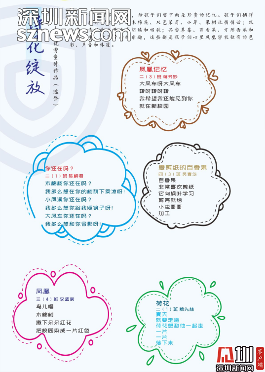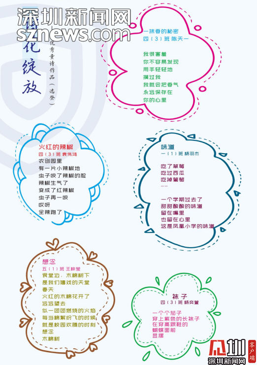編委會的老師感慨,《童詩鳳凰》這本詩集是扎根于詩意校園的土壤結出的詩花。是鳳凰的孩子們在荷塘邊、在草莓地、在蘑菇亭、在好玩的地方用心聆聽大自然后,最真實最動人的表達。