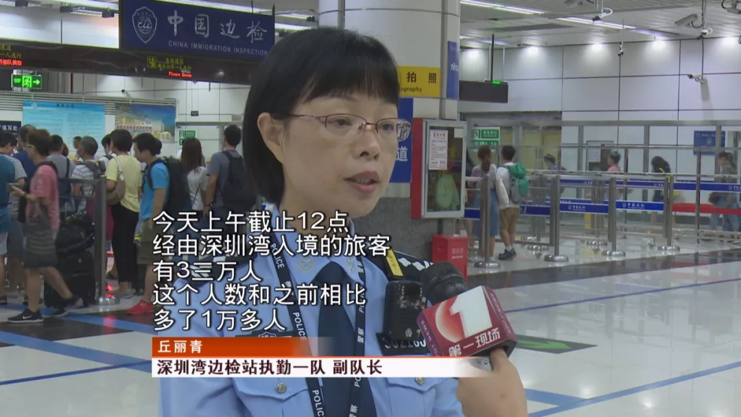 10月5日中午12點(diǎn),在皇崗口岸的入境大廳,有不少旅客提著大包小包的行李準(zhǔn)備排隊(duì)過(guò)關(guān)。整個(gè)入境大廳15條自助通道和13條人工通道已經(jīng)全部開(kāi)啟,排隊(duì)過(guò)關(guān)的市民都可以在3分鐘之內(nèi)快速通關(guān)。