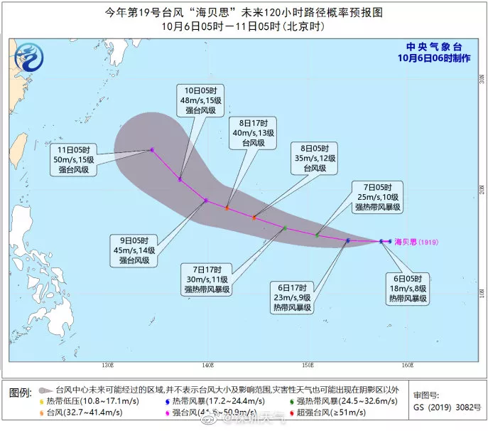 今年第19號臺風“海貝思”(熱帶風暴級)(英文名稱:Hagibis;名字來源:菲律賓;名字意義:褐雨燕)于今天凌晨2點鐘在西北太平洋洋面上生成,早晨8點鐘其中心位于美國關島偏東方約1180公里的西北太平洋洋面上。根據(jù)目前的預報,它會早早拐彎北上,和我們一點關系都沒有。