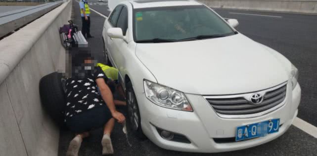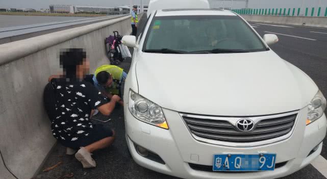 10月5日下午4點(diǎn)多,珠海交警郭警官開(kāi)著警車(chē)在珠三角環(huán)線(xiàn)高速巡邏時(shí),看到有一輛粵AQ××9J號(hào)白色豐田小車(chē)??吭趹?yīng)急車(chē)道上,打著雙閃。郭警官立即上前詢(xún)問(wèn)情況,原來(lái)小車(chē)剛上高速?zèng)]多久就爆胎了,司機(jī)深知在高速停下來(lái)很危險(xiǎn),急得團(tuán)團(tuán)轉(zhuǎn),天還下起了小雨。