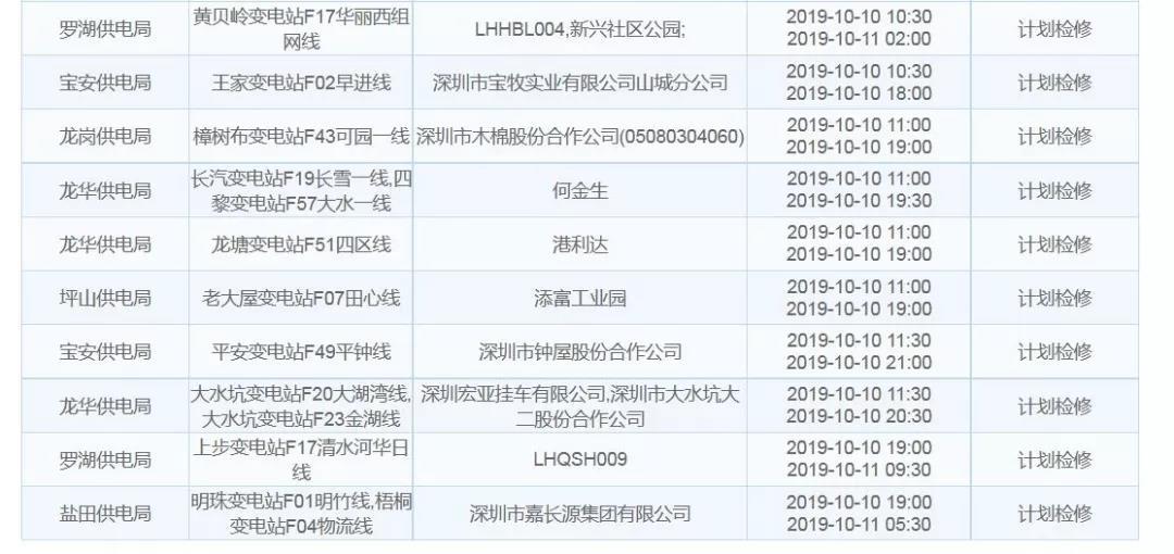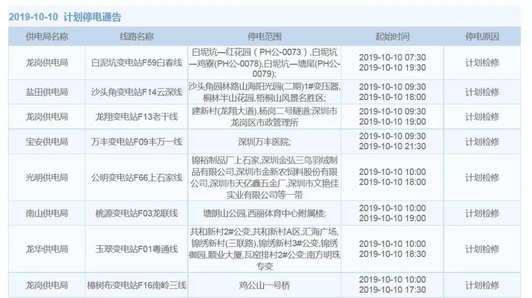 10月10日計(jì)劃停電通告