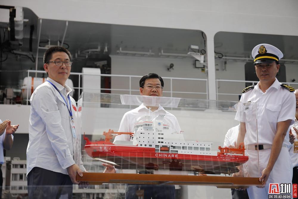在活動現(xiàn)場,南極科考隊向深圳市人民政府贈送了比例1:100“雪龍2”號船船模紀念品,隨后,南極科考隊向招商局集團贈送全體科考隊員簽名的隊旗等。此外,黃敏副市長率隊登船參觀、慰問考察隊員,并與考察隊員親切交流座談。